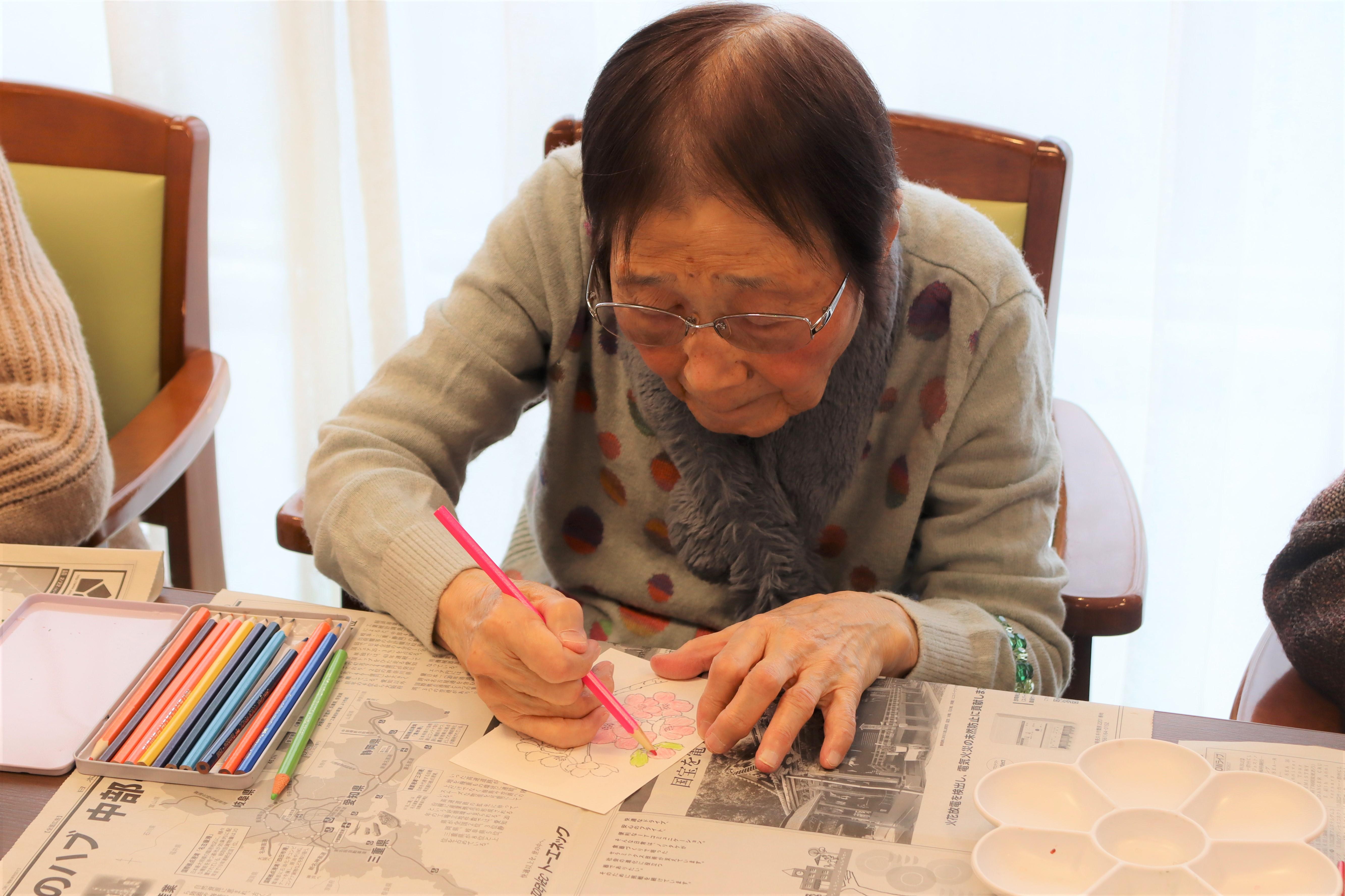 本日は、絵手紙作成を行っています。皆様真剣に取り組まれ、桜の絵手紙を作っていました。下絵からご自身で作成出来ると良いですね…。