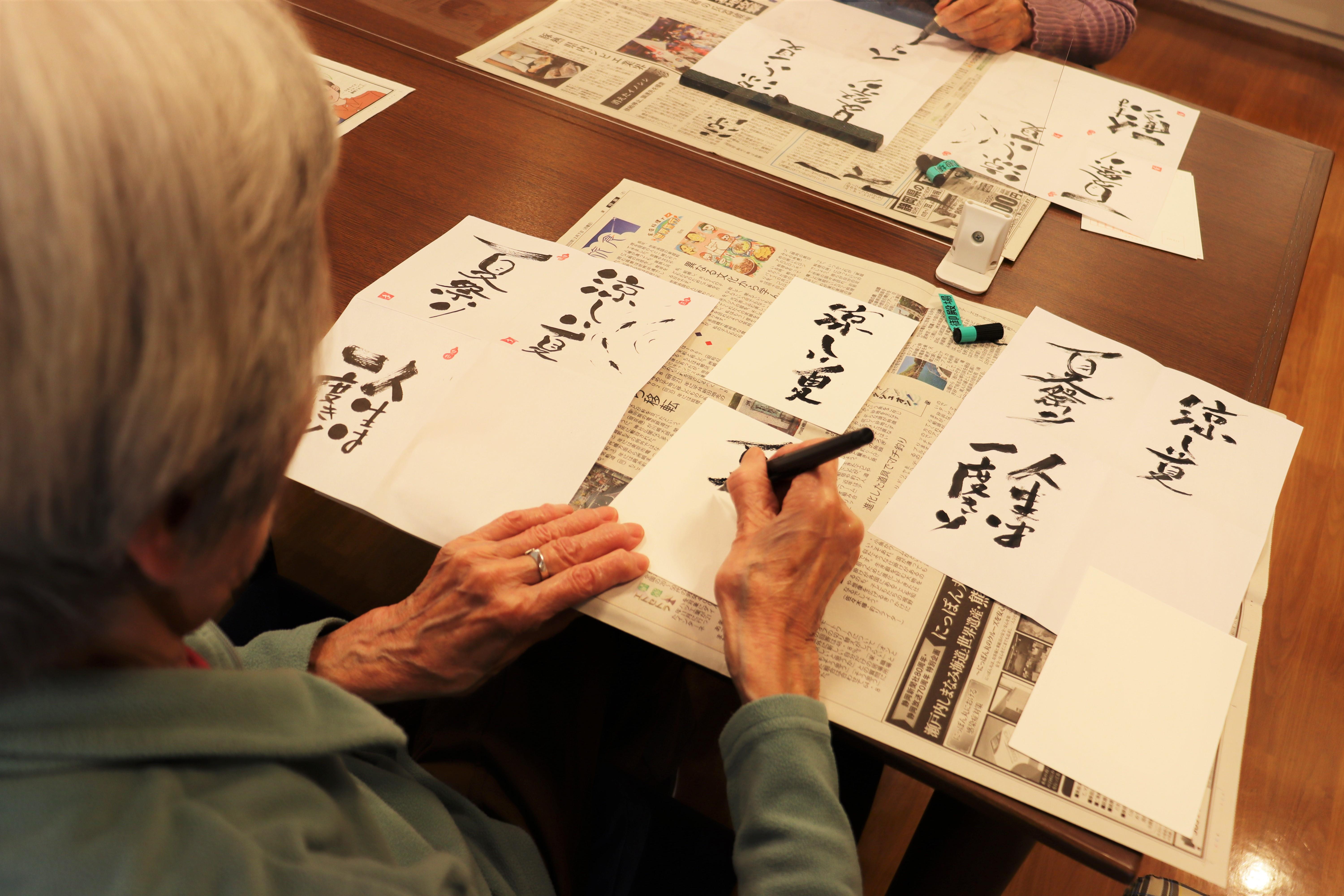 お手本を見ながら集中され、自分だけのオンリーワンの書が完成しました。