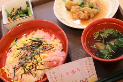 ひな祭りの日にちなんで、散らし寿司を提供しています。