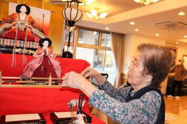 御殿場市の風習として旧暦まで飾るそうですので、施設でも同様に4月まで飾り、お客様に目でも楽しんでいただいています。