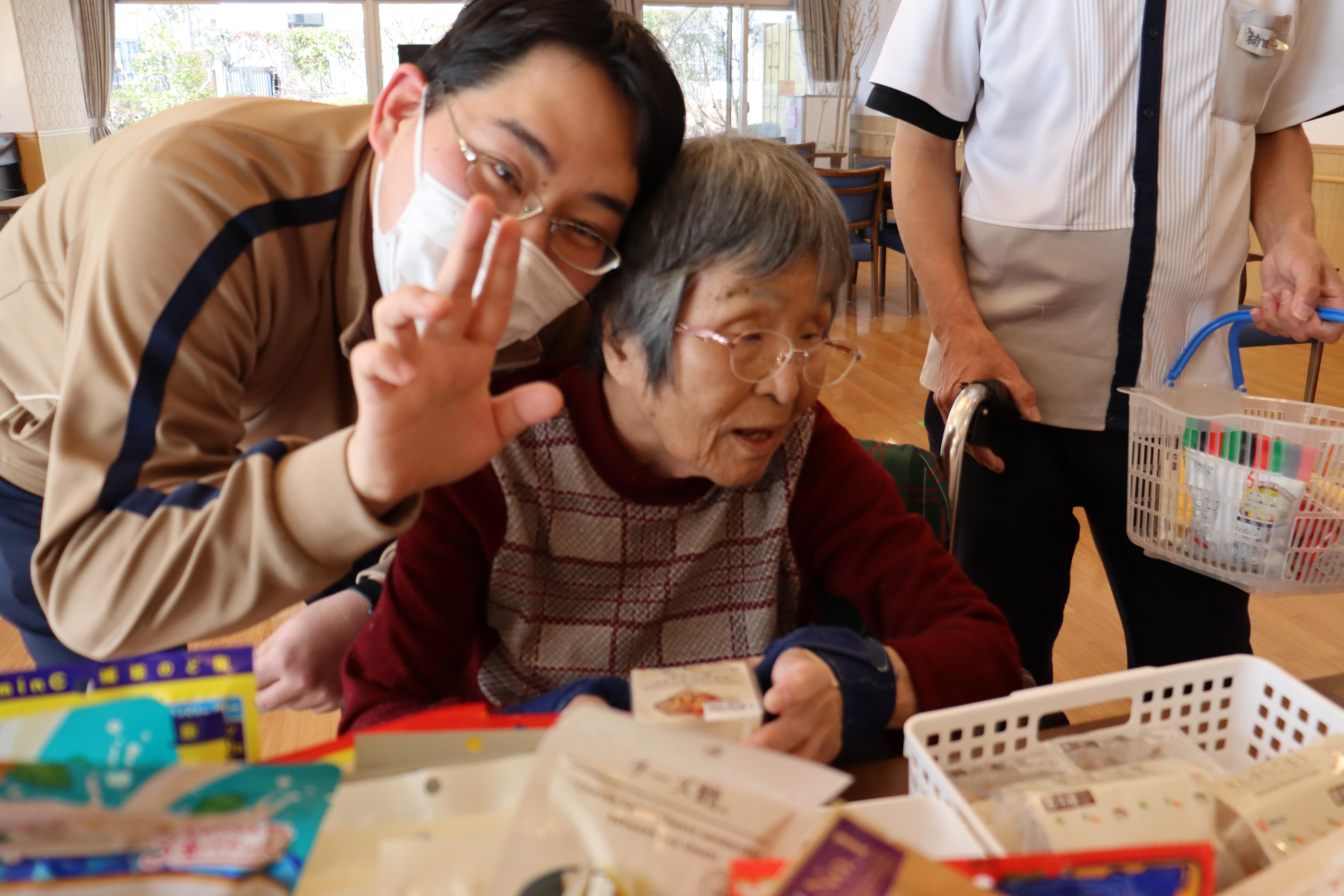 ローソンの訪問販売も定着してきました。皆様から「今度いつ来てくれるの?」と催促があるほど。。。毎週スタッフが代行で購入して来ていますが、やはりご自分で選んで購入する事が嬉しいですよね!色々物色されながら、時間いっぱい楽しまれていました。