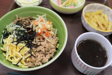 ツクイ・サンシャイン御殿場では、食事イベントととして、『健康御膳』を提供しています。これまでもイベントとして、お客様へお食事を楽しんでいただいておりましたが、更に〝食〟をテーマに何かできないかと、調理スタッフが考えてくれました!
