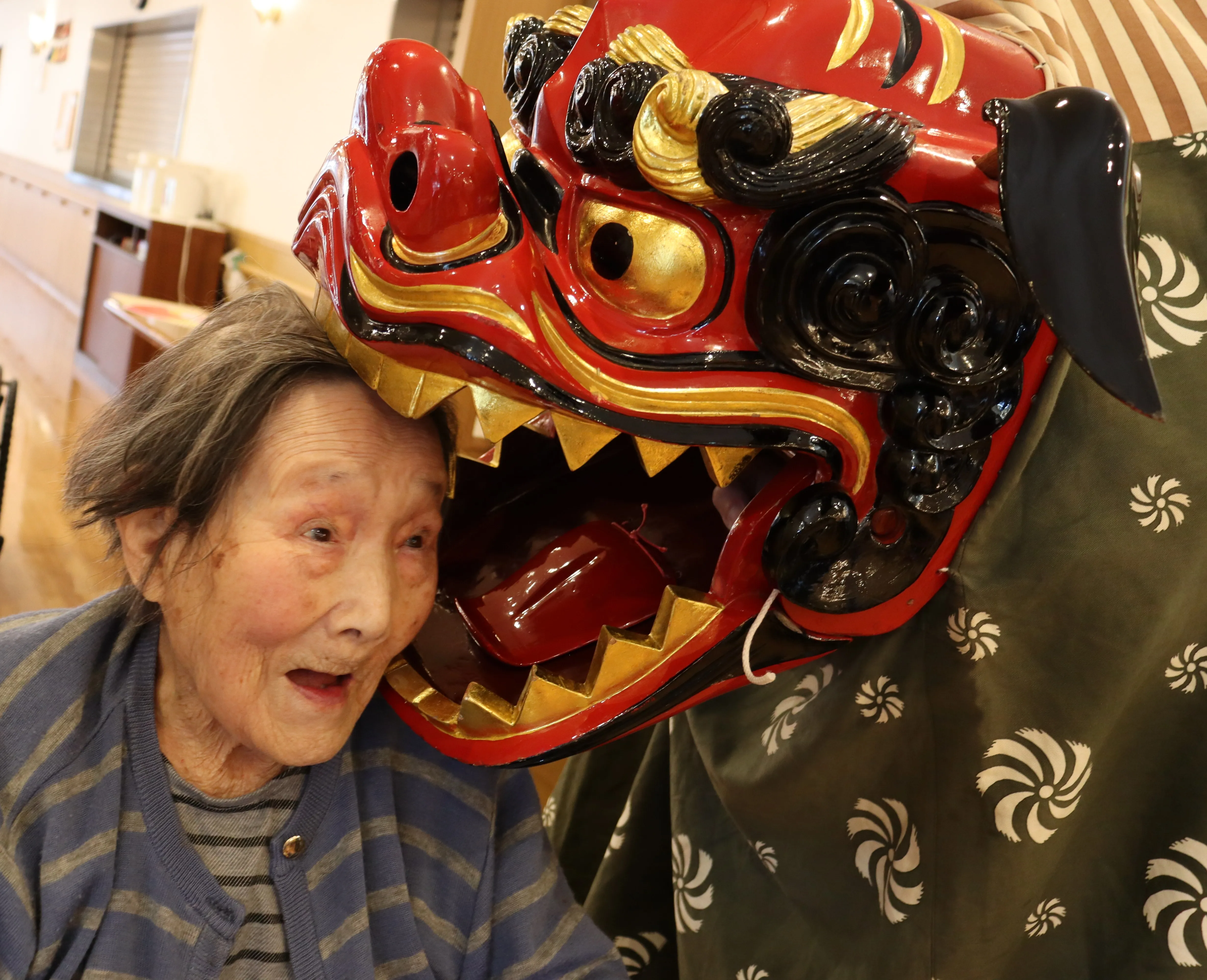 『頭を噛んでもらうと、この1年は病気しらずですよぉぉぉ~』と皆様喜んで、頭を差し出して下さいました。