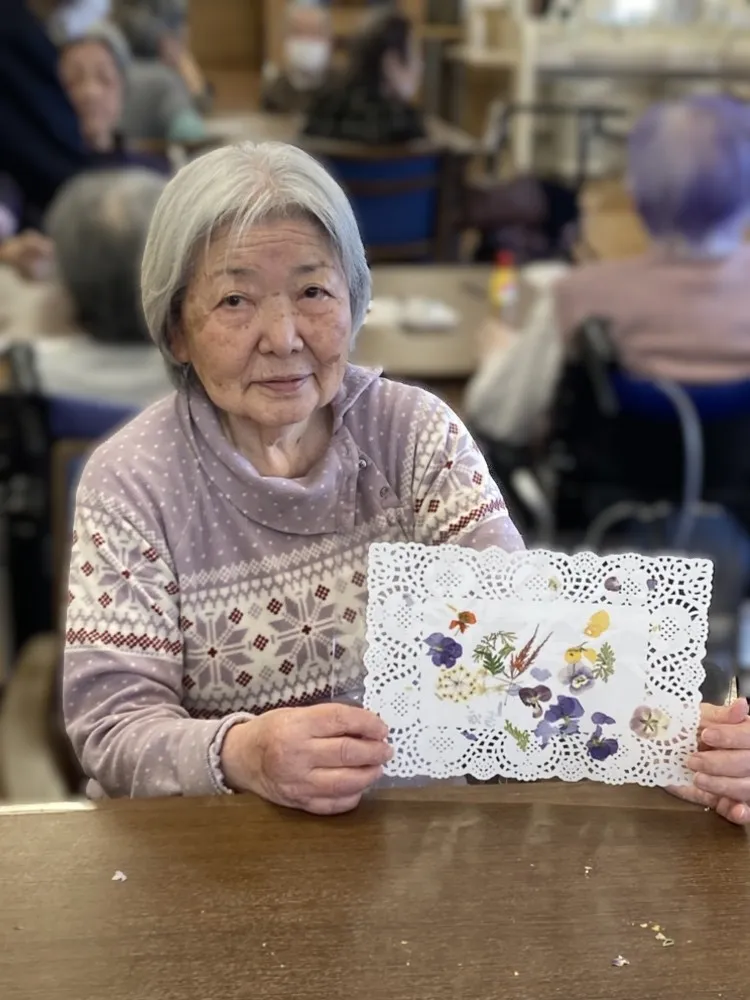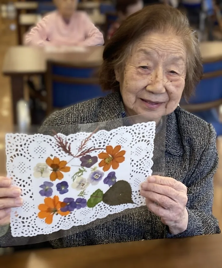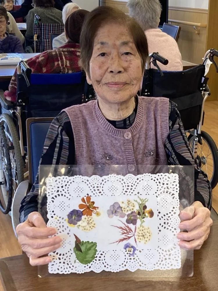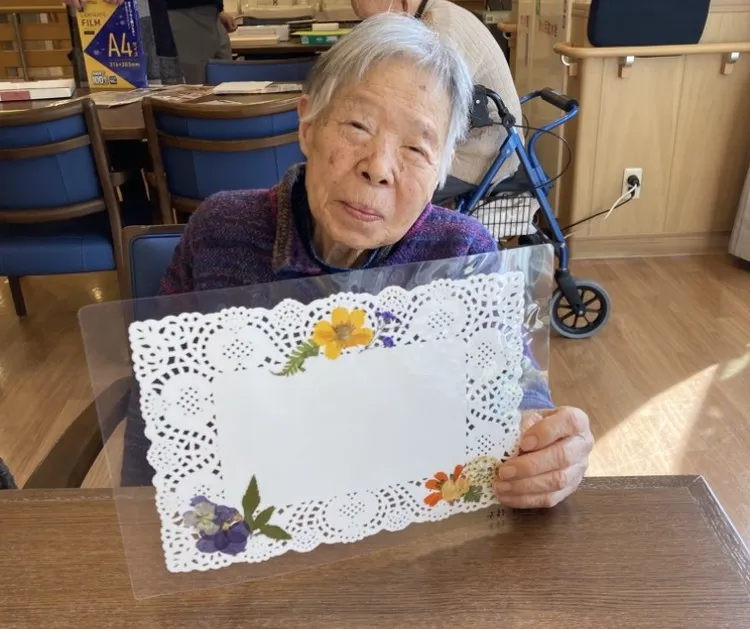 押し花の先生をお呼びして、ランチョンマットを作りました!材料は一緒でしたが、お一人おひとりの持ち味が活きた仕上がりになりそれぞれの感性が形となり、素晴らしい作品が出来上がりました。