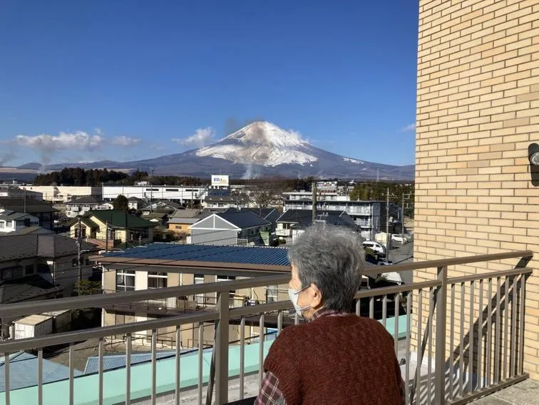 冬晴れの空の下、屋上に出て少しお散歩。『空気が澄んでいて気持ちがいいね』と、冷たい風も心地よい刺激になったようです。その後は温かいお茶で、しっかり水分補給と休憩をしていただきました。