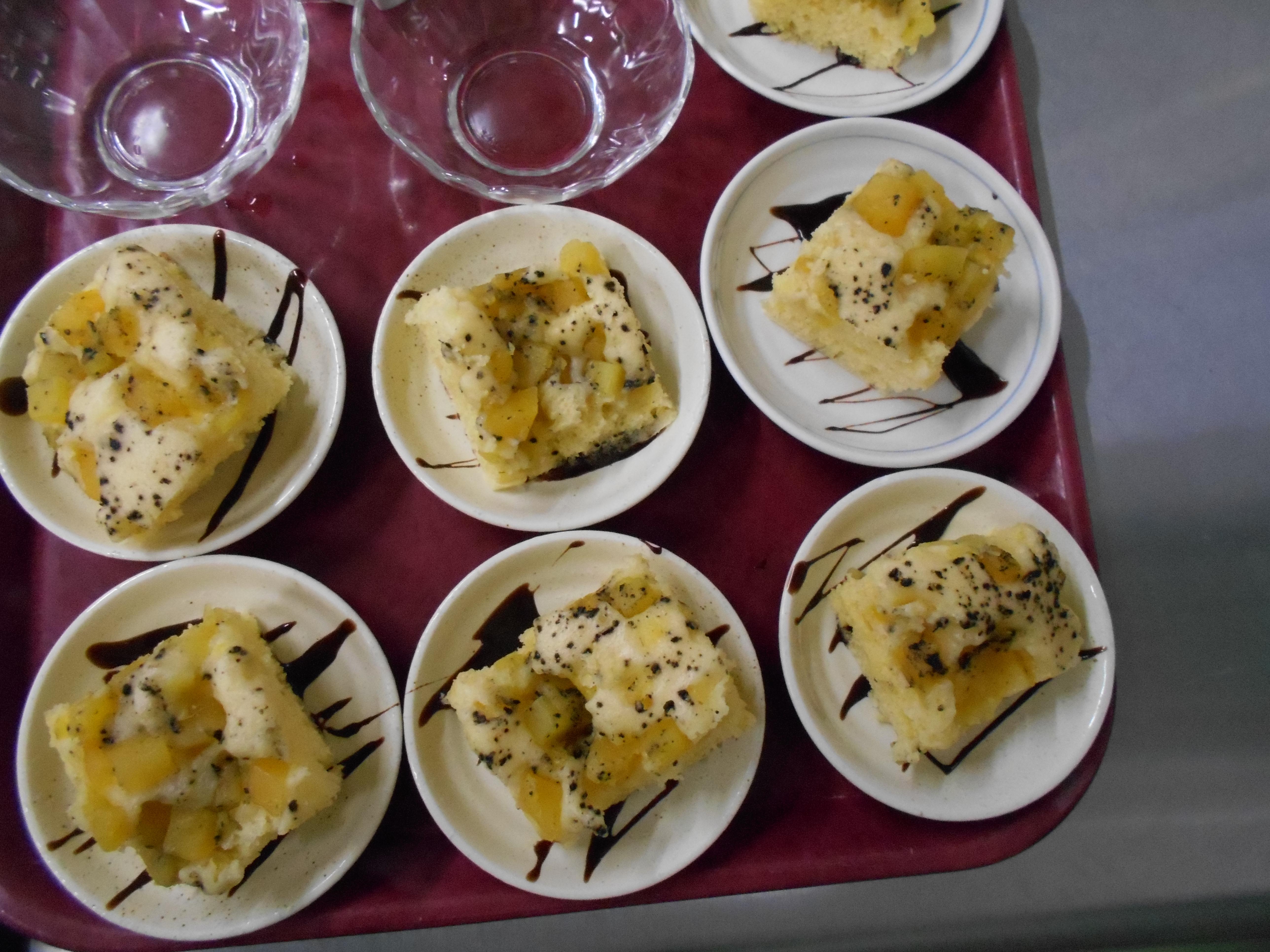 おやつは”サツマイモの蒸しパンケーキ”を美味しくいただきました。