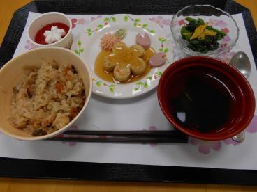 さくらの日特別メニューを昼食に提供させていただきました。