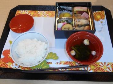 お食事は、お正月ですので、朝食はお雑煮、昼食にはおせちを提供しております。