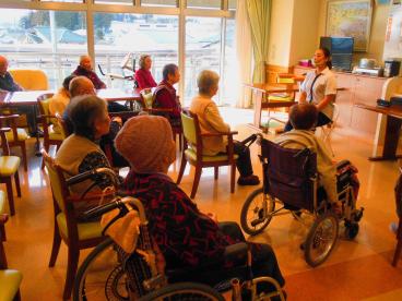 普段ヨガ教室を行っている職員にて椅子タイチを行い、ヨガよりも体を動かすことが多いため、「少し難しかった」「いつもと違う体操で楽しかった」と様々な反応を頂きました。