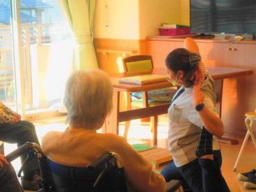 ヨガの資格を取得した職員が、皆様と一緒に出来るヨガを披露。