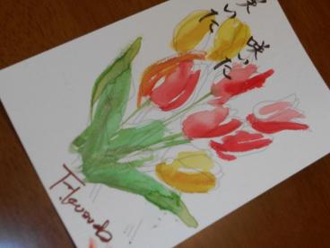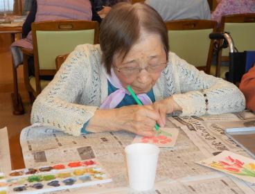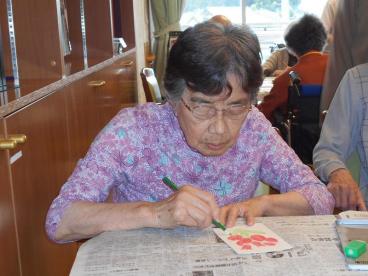 今月の絵手紙クラブの風景です。皆様、真剣に作成を行っていました。声を掛けるのも申し訳ないくらい真剣に、作成されていました。