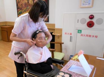 女性のお客様が順番に、受けられていました。終わった後皆様、本当にすっきりした表情で、カメラを向けると少し照れていました。お化粧すると、心も表情も変わりますね。