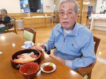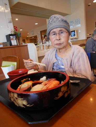 嚥下訓練中の方は言語聴覚士が付き添い、「好きな刺身が食べられて嬉しい」と喜ばれていました。