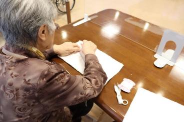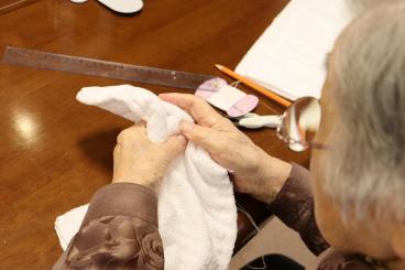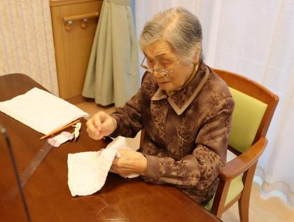 生活リハビリの一環として、雑巾縫いを行っております。手縫いではありますが、やはり昔から行ってきた手先ですね。難しいとは口では仰られていましたが、手先はしっかり覚えていました。認知症予防、生活リハビリとして今後も行っていきたいと考えております。