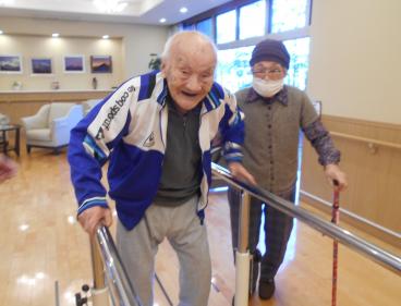 今年100歳を迎えるご主人の歩行訓練にも、奥様付き添って見守られています。