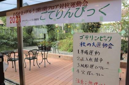 今年はオリンピックも開催されております。ツクイ・サンシャイン御殿場では、毎年秋の運動会をゴテリンピックと称し、開催しています。こじんまりとした運動会ではありましたが、コロナ禍の外出出来ないストレス解消に繋がったのではないかと…思っています。