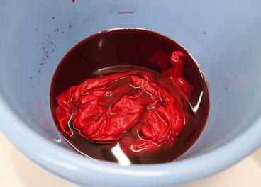 出来た作品は、洗濯し余分な色を落とし、干して完成を待っています。