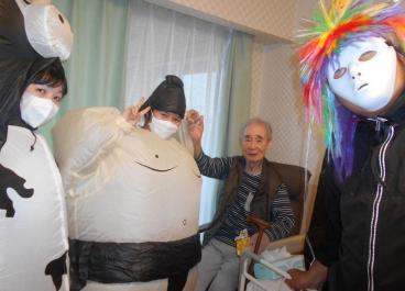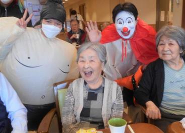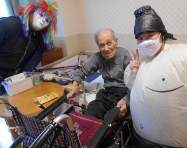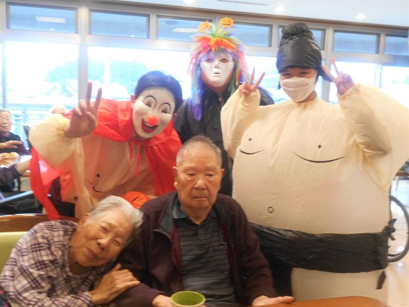 施設内でハロウィーンを行っています。職員の仮装で、皆様喜ばれて(?)いました。普段関わっている職員の変わった姿は、皆様わかって頂けたでしょうか?