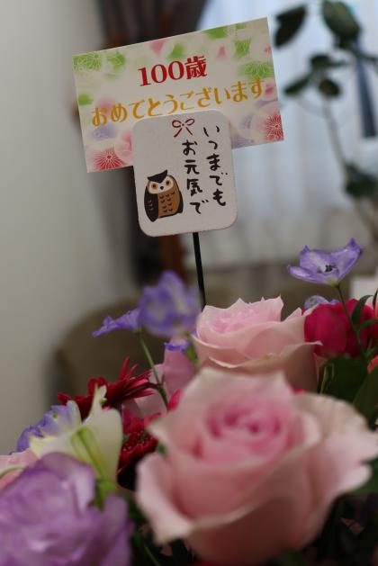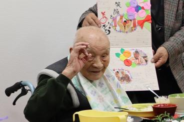 食後、施設職員からご本人様にお祝いのメッセージをお渡しさせて頂いております。一度しかない100歳当日のお祝いさせて頂き、職員もうれしい限りです。