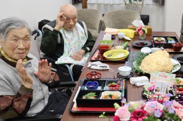 百寿の記念に、栄養課職員(調理職員)が腕を振るってお祝いランチを作り提供しています。