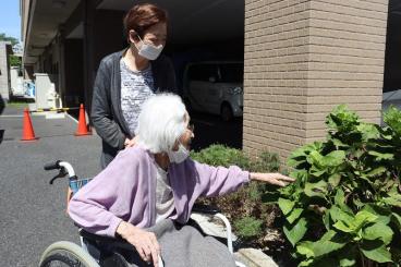 新型コロナウイルスの感染を予防する生活から、外出制限も緩和されて、施設内でしたが久しぶりにお散歩に出かけました。