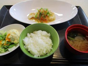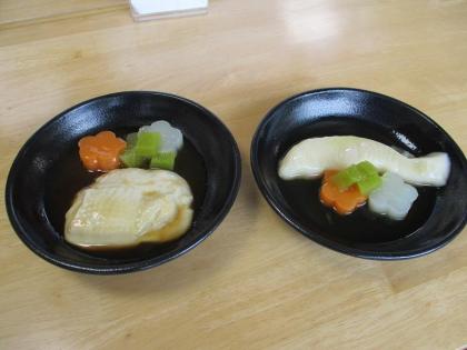 今月は、「たらのあんかけ」か「鶏肉の甘酢あん」のメイン2種類が選択できるセレクト食となっています。ソフト食の方でも目で見て楽しんでいただけるよう、形状にこだわっています。