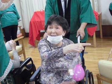 お客様と一緒に体操した後、ソーラン節の踊りを見て頂き、懐かしいヨーヨー釣り・輪投げ・射的・ボーリングなどの出し物を楽しんでいただきました。
