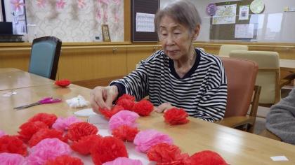 さて4Fフロアでは5月の壁面飾り作りに取り組んでおります。