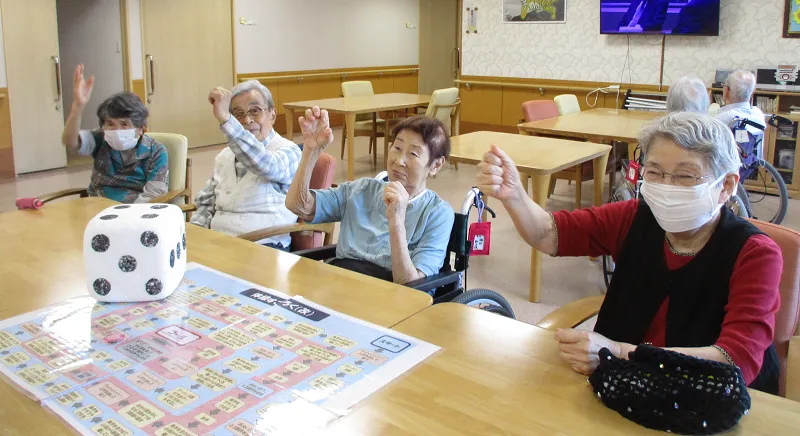 お客様皆様で集合し、すごろくを行いました。