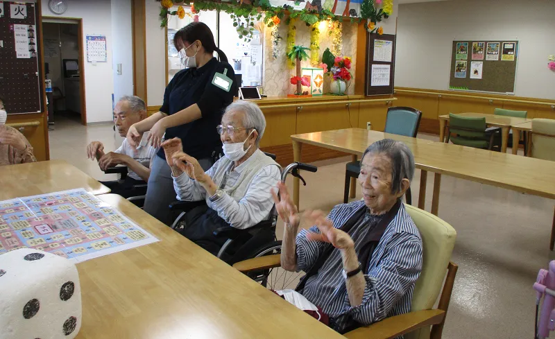 「肩の上げ下げ」「拍手」などがマス目です、楽しいひと時を過ごせました。