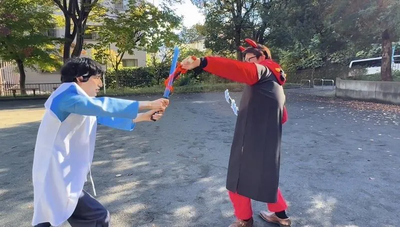 時代劇さながらの“殺陣(たて)”シーンにも挑戦し、どうすればお客様に楽しんでもらえるかを考えながら、スタッフ同士のスケジュールを調整して撮影しました。