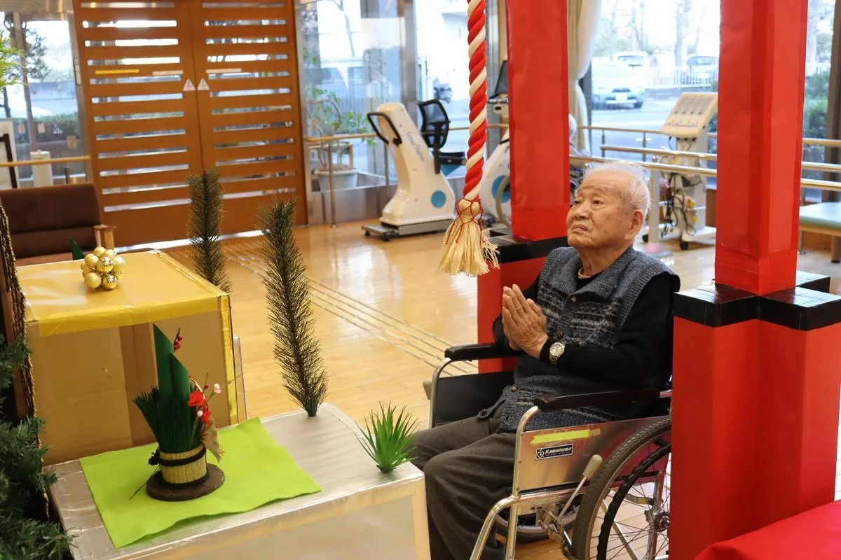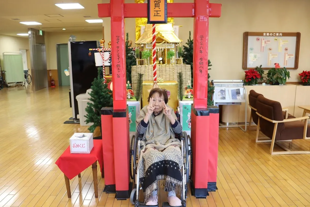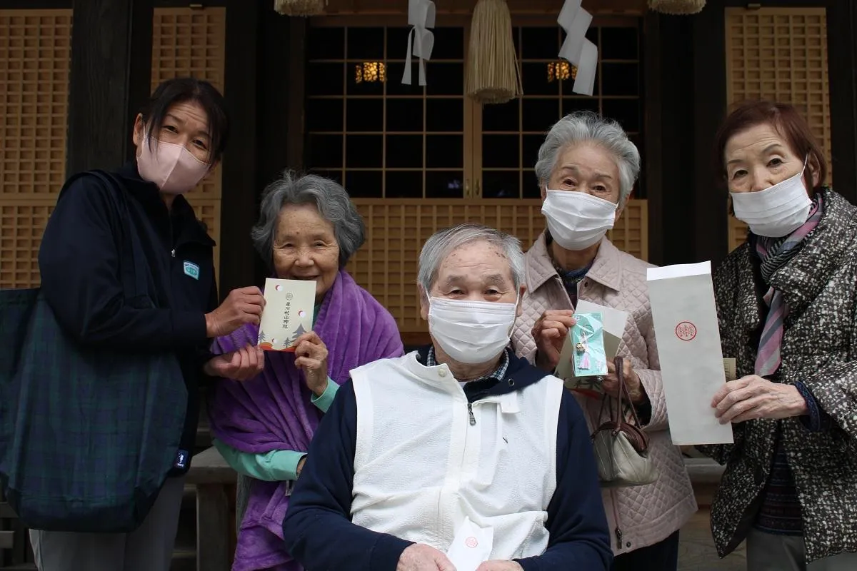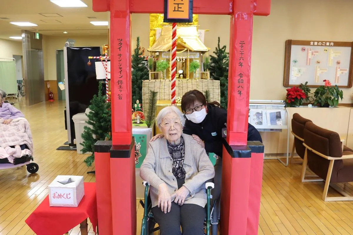 年末に、お客様と一緒に毎年施設恒例のツクイ・サンシャイン保土ヶ谷神社に供えるお札を