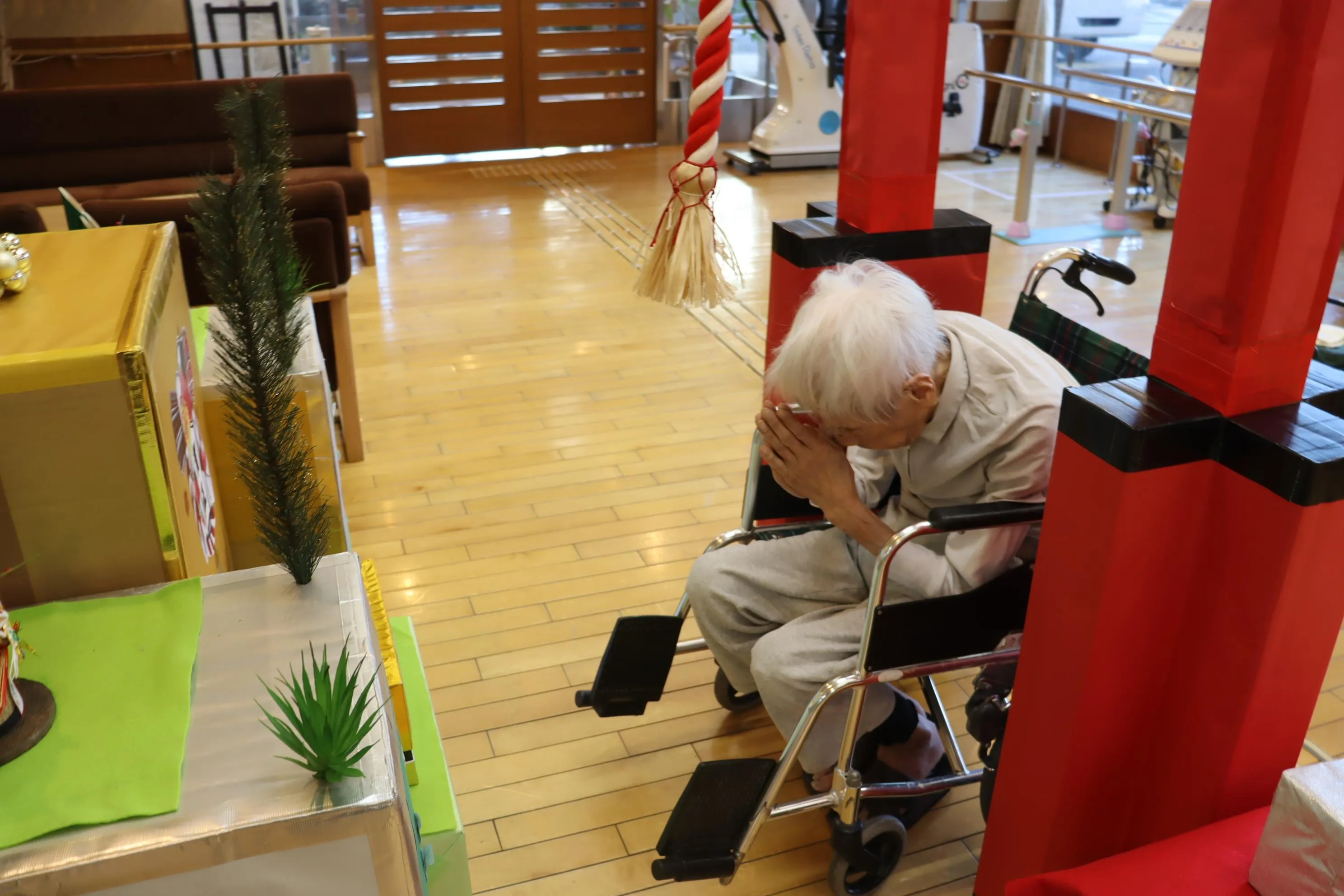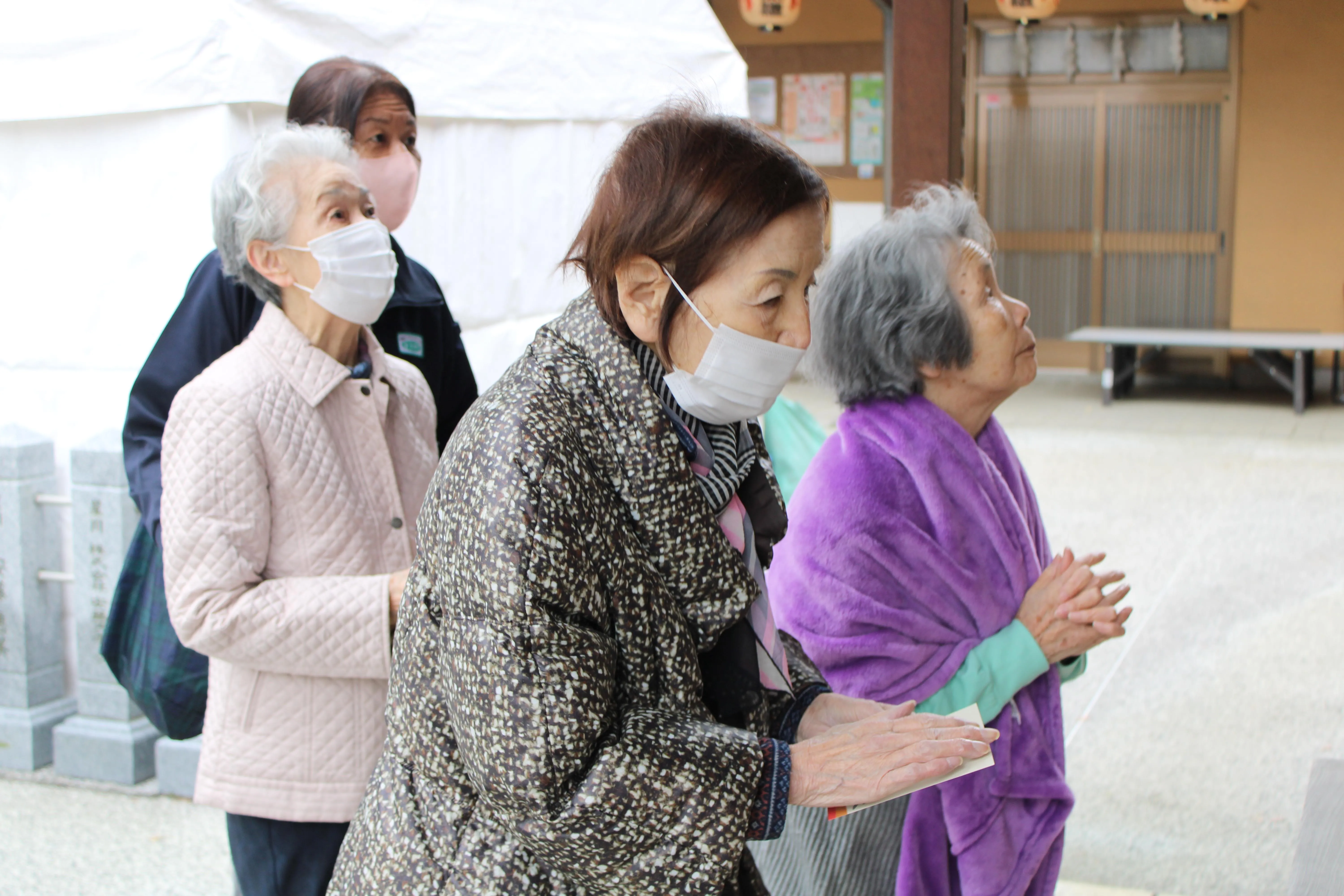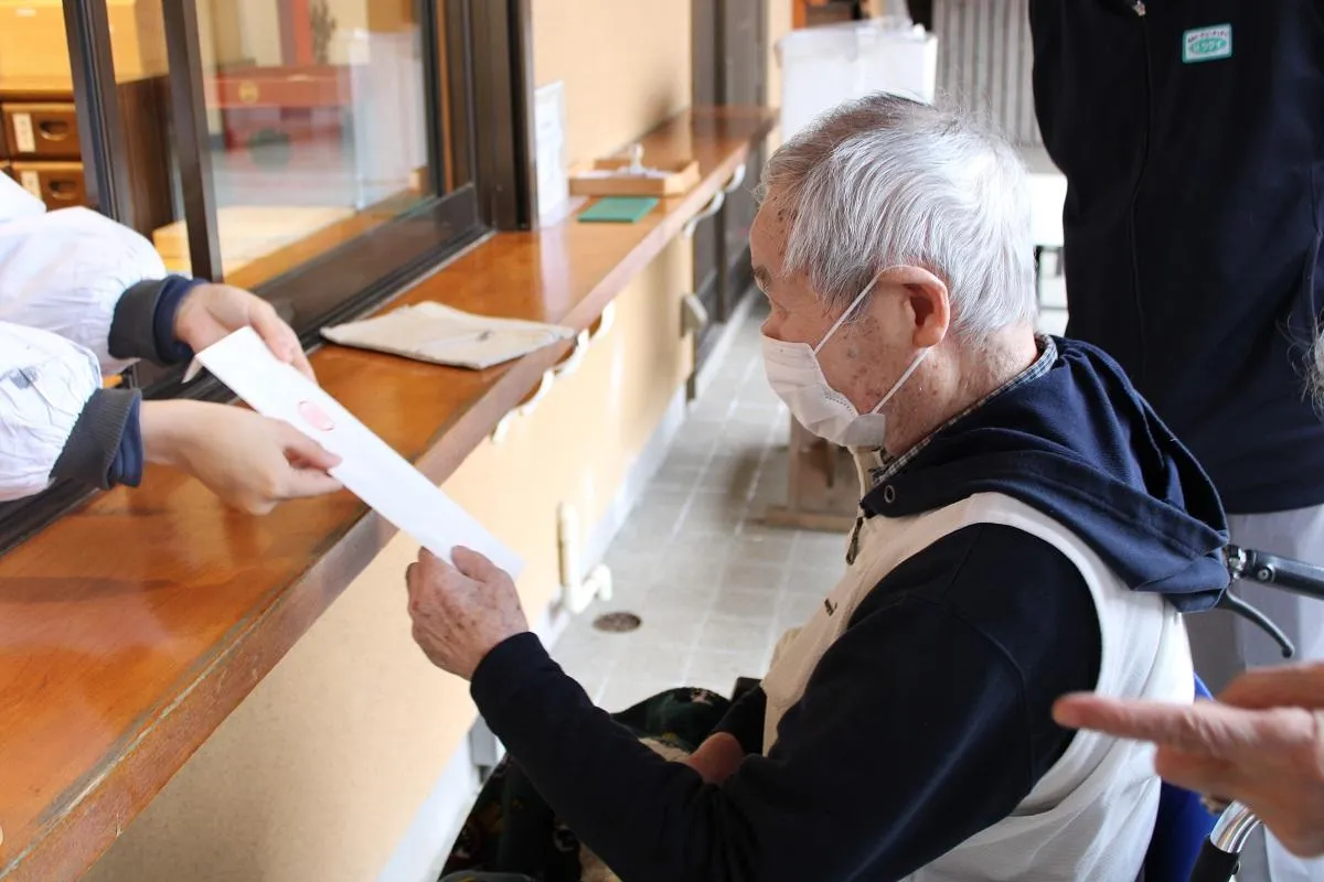 年末に、お客様と一緒に毎年施設恒例のツクイ・サンシャイン保土ヶ谷神社に供えるお札を