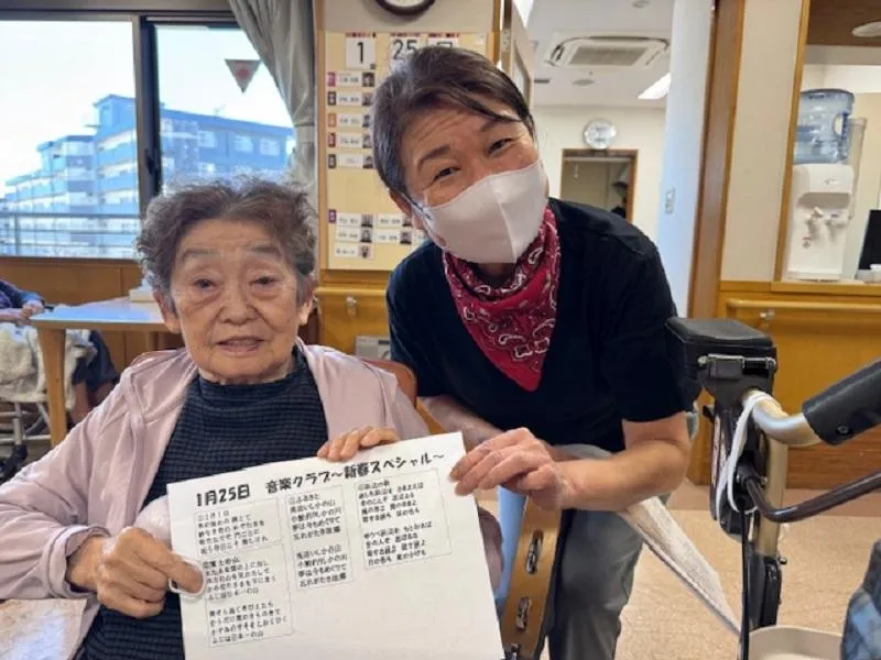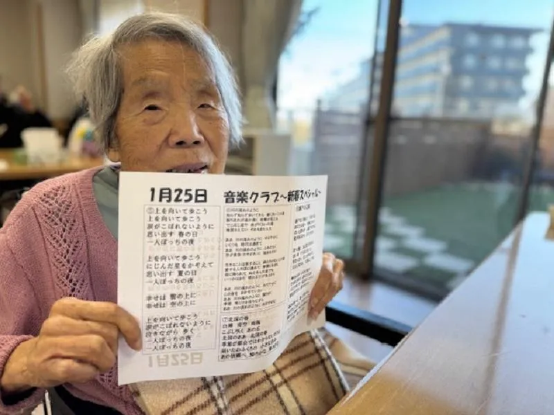 「1月1日」や「富士の山」では、お正月らしい雰囲気を感じながら元気に歌っていただき、「ふるさと」や「浜辺の歌」では、口ずさみながら当時の思い出を語られる場面も見られました。