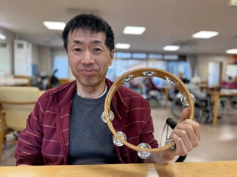 また、ギターやタンバリンをお客様に持っていただき、演奏に合わせてリズムを取ったり、音を鳴らしたりしながら参加していただきました。
