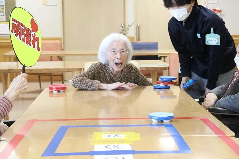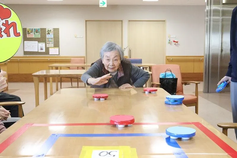 オリンピックの熱気にあやかって、本日は3階フロアでテーブルカーリングを行いました!