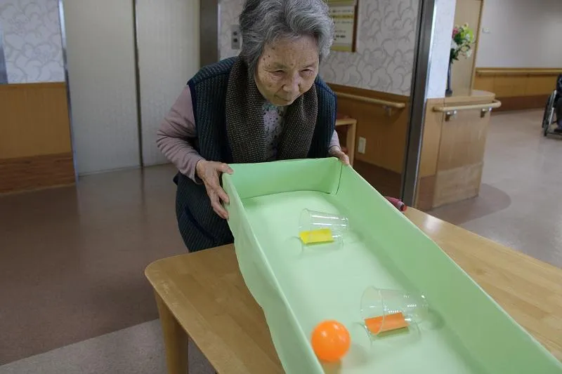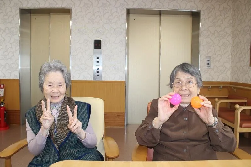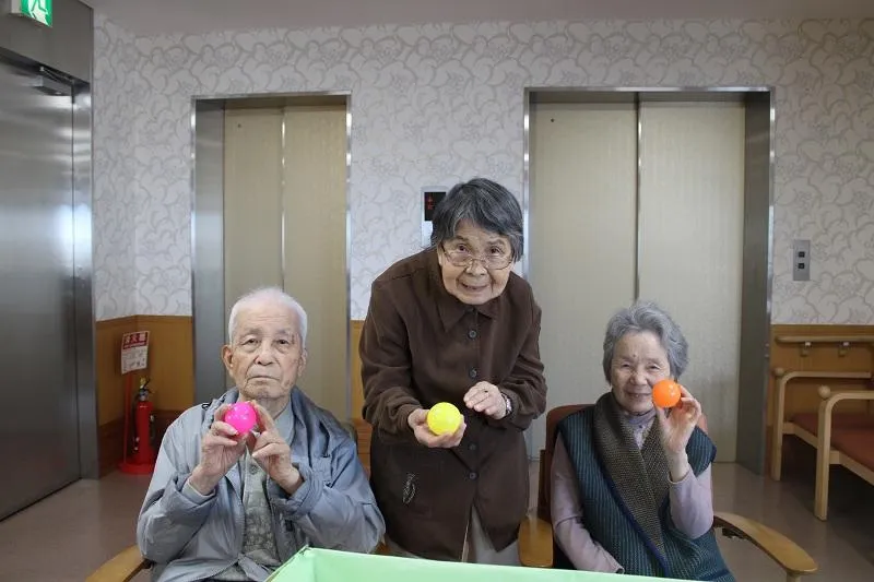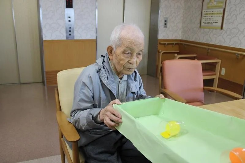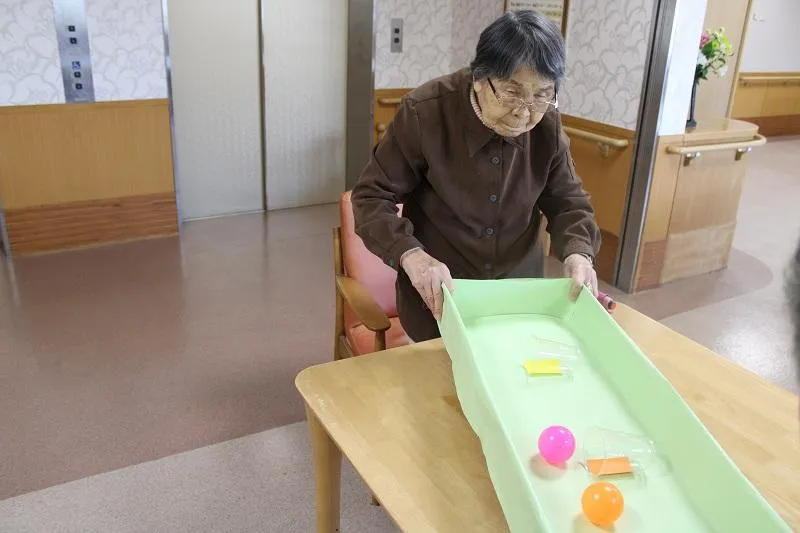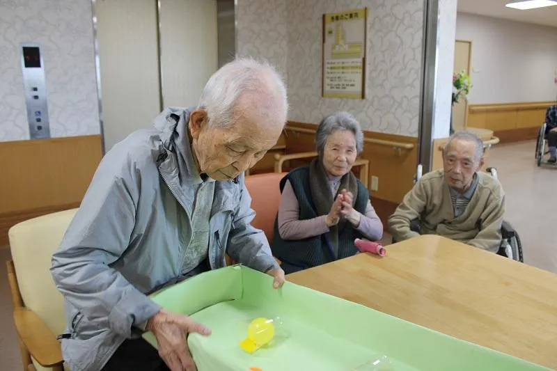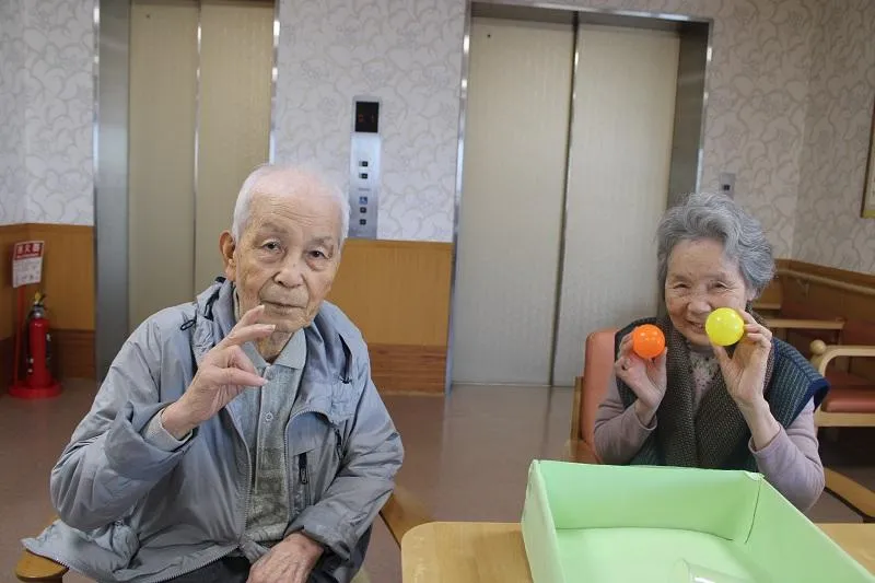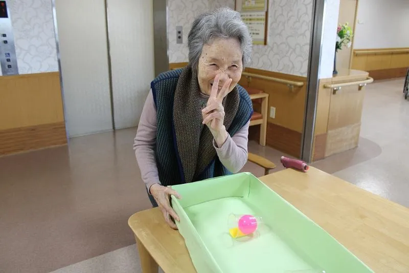 最初は難しい場面もありましたが、段々とカップに入るようになり自然と笑顔があふれていました。季節の変わり目でもあり、挑戦された方は「いい運動になった!楽しかった!」と仰っていました。またペアで挑戦することでお客様の交流も生まれ、和やかな雰囲気の中、楽しい時間を過ごすこともできました。これからも皆様に楽しんでいただけるよう、取り組んでまいります。
