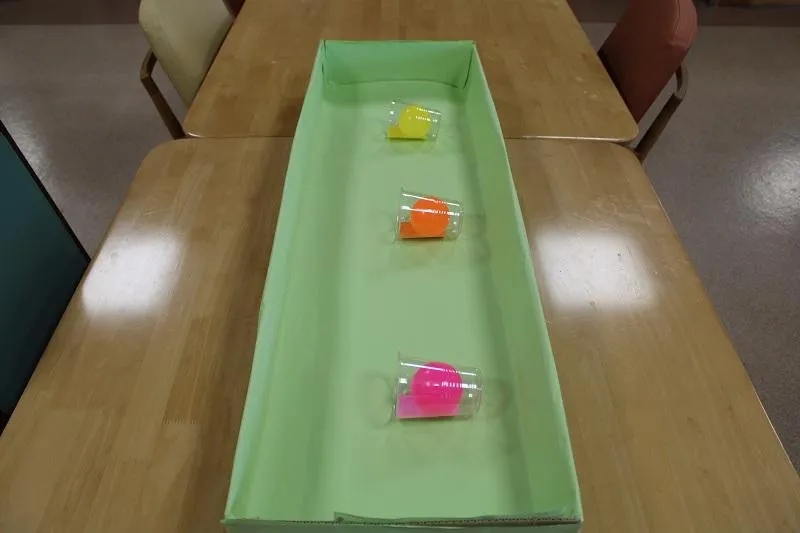 今回は二人一組になり、カラーボールを使って色分けされているカップに入れるゲームを行いました!!息を合わせて挑戦する様子をご覧ください!