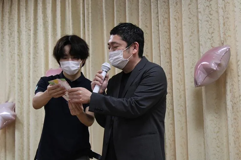 ブーケを渡し終わった後、男性のお誕生日の方が「一言話したい」と仰いました。