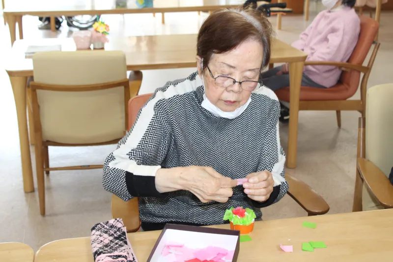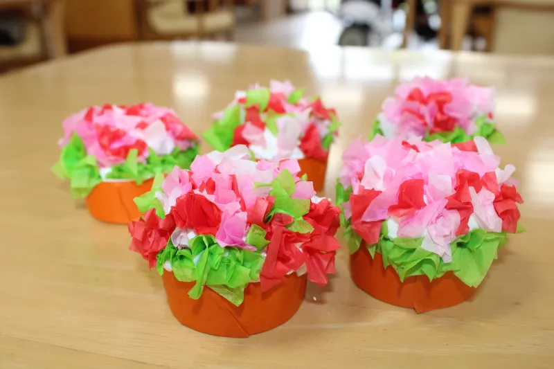 先日のフラワーブークに続き本日はレクリエーションで「フラワーバスケット作り」を行いました!