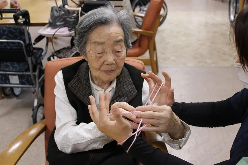 今回は、お客様同士やスタッフと一緒に楽しむ「あやとりリレー」を行いました!