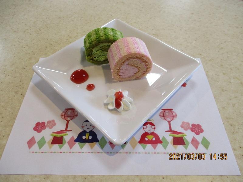 ロールケーキをご用意しました。お口の中ですっと溶けるよう、ふんわりしっとりと仕上げました。