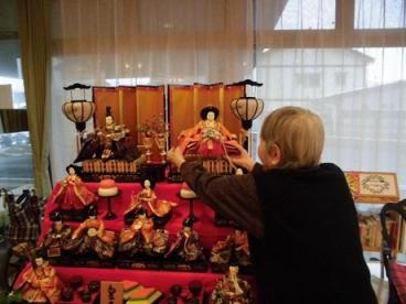 箱から取り出されたひな人形を優しく、丁寧に飾っていただきました。