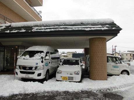 私達も除雪の邪魔にならないように前日は、夜勤者と施設の送迎車両を玄関先に格納します。