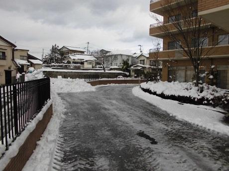 昨夜から深々と降り続けた雪。今朝の施設前の様子です。