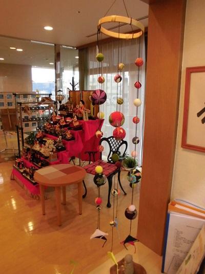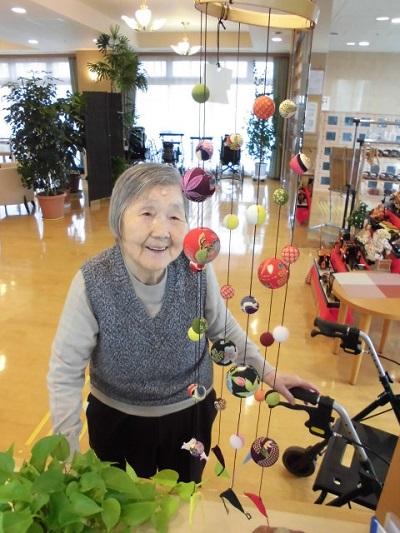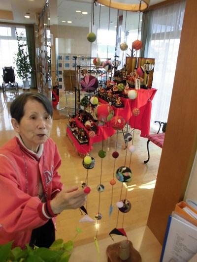 施設職員が自宅から持参した、つるし雛を事務所前に飾りました。