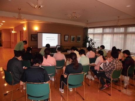 今月の職員全体研修の様子です。テーマは「ターミナルケア」についてです。日ごろから研修を実施し、職員一人一人のスキルアップを図り、お客様に安全、安心して過ごしていただけるよう努めて参ります。