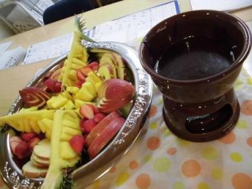 事前に皆様に切っていただいたフルーツやマシュマロに、たくさんチョコレートをつけて召し上がっていただきました。