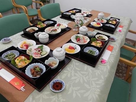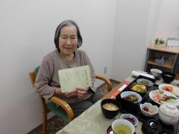 栄養課より、お客様のお好きなお刺身や旬の食材をたくさん盛り込んだ、お祝御膳を提供させていただきました。