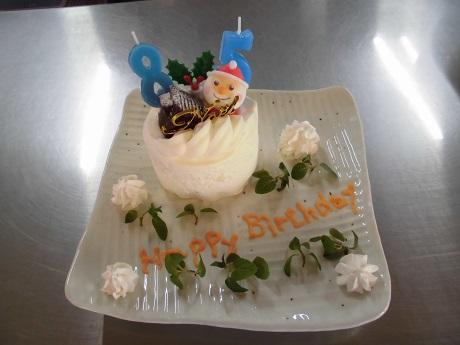 食後にはお誕生日ケーキを召し上がっていただき、とても喜んでいただけました。